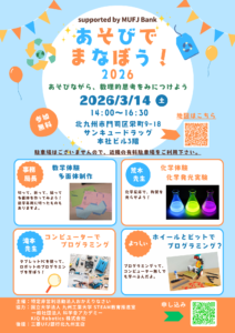 (今回も遅ればせな投稿でごめんなさい。それと、少し実施前のお話が長いです。) 2026年(令和8年)3月14日(土)14:00~15:30で、「あそびでまなぼう...
