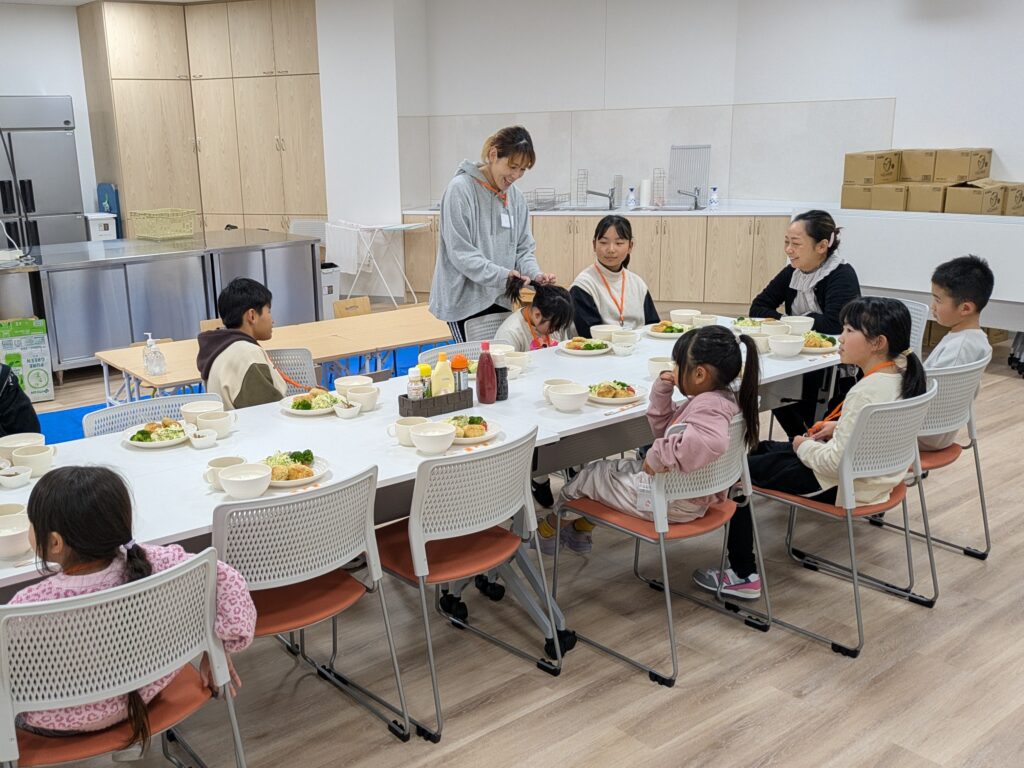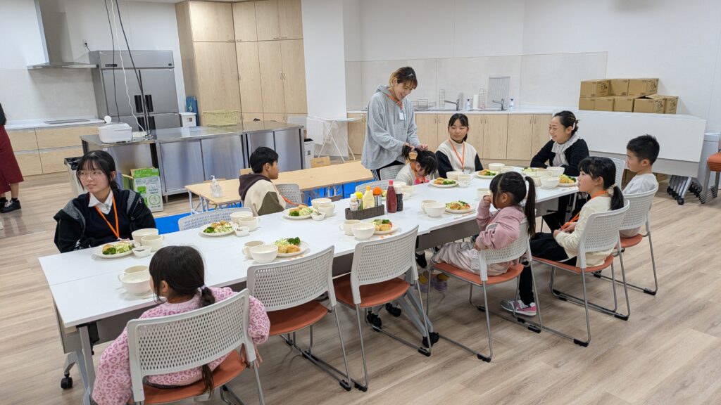 今回、子ども食堂のみの予約をして下さっていた3家族は、会場に来てみたら実はみんなママ友だったという事で、3家族の子ども達は元々遊び仲間なので、すぐに一緒に遊び始めたし、お母さんたちもママ友井戸端会議と化しました。