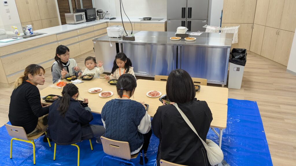 子ども食堂は、その1組のご家族と殆どの回に参加いただいている2組のご家族、計3家族で会食しました。