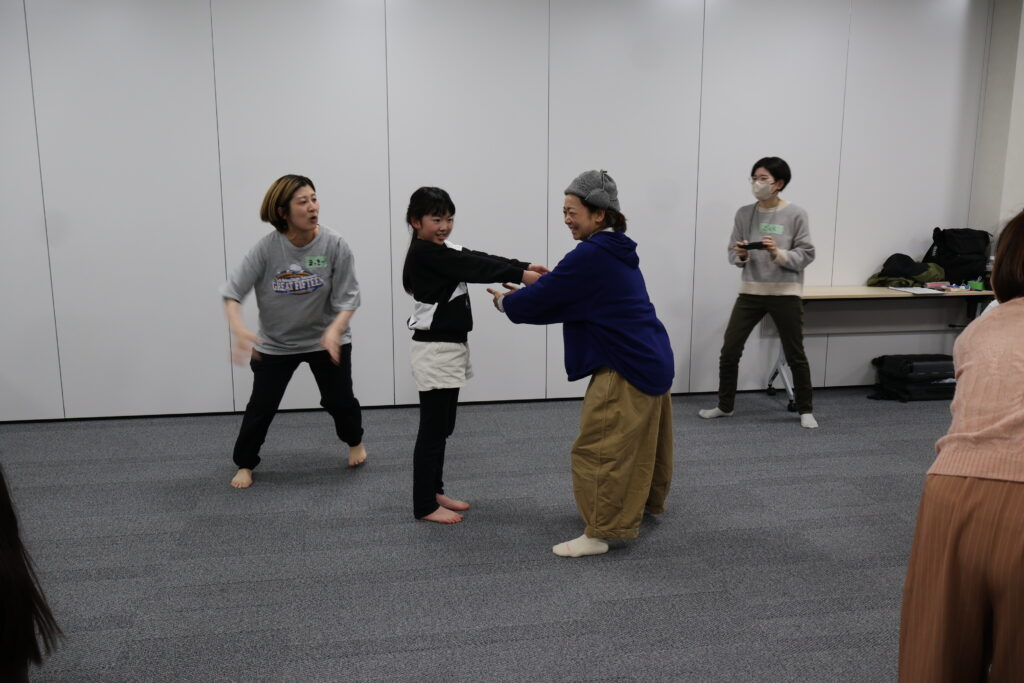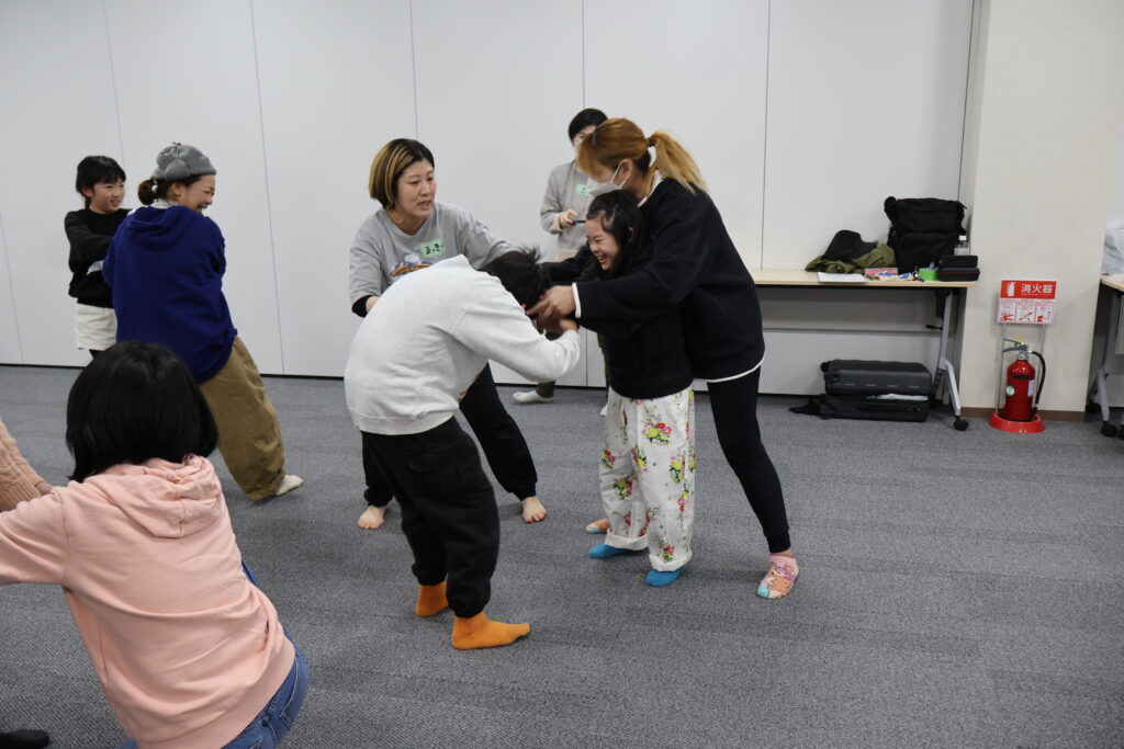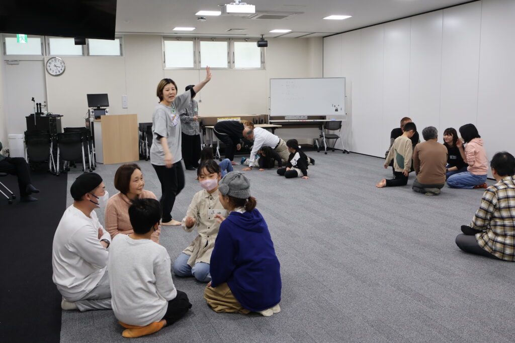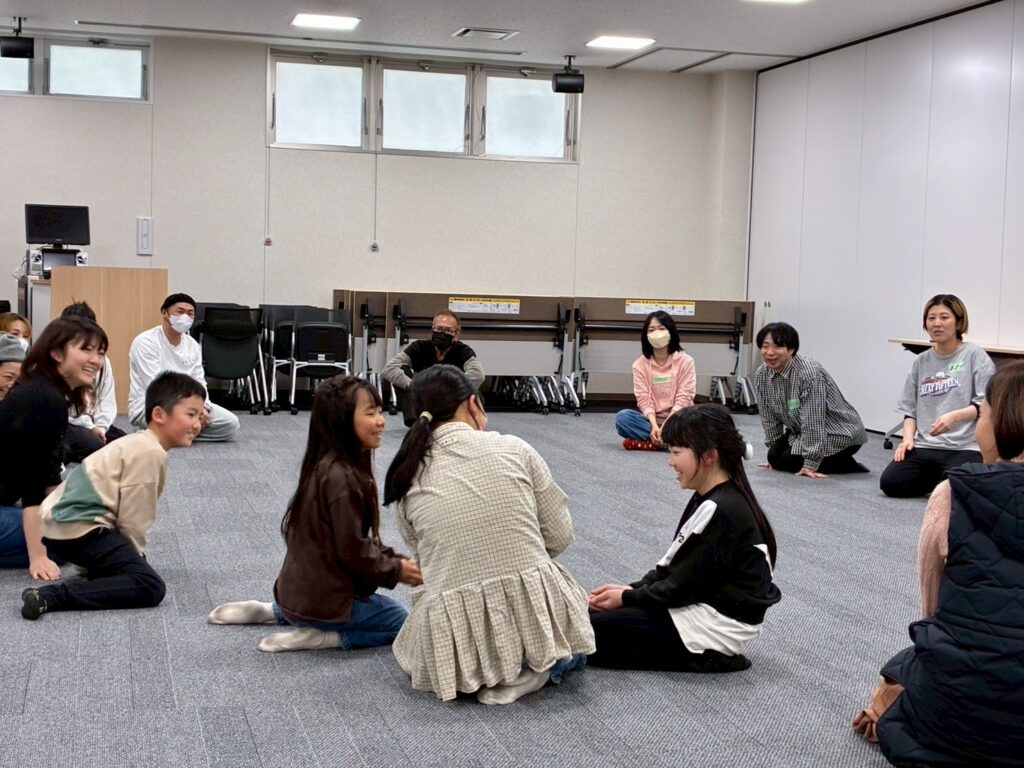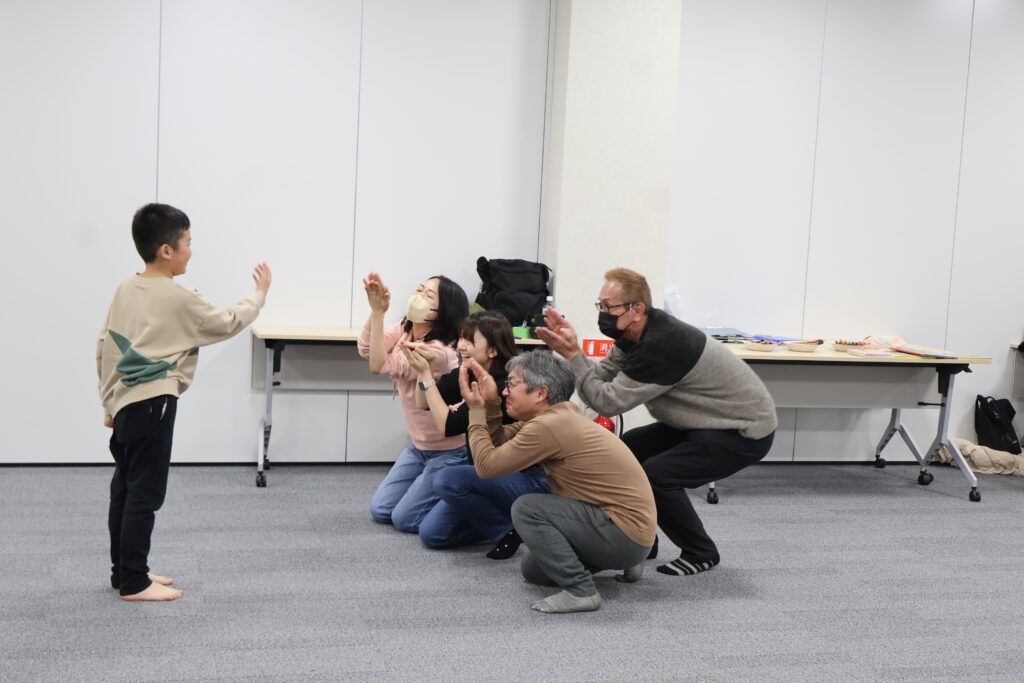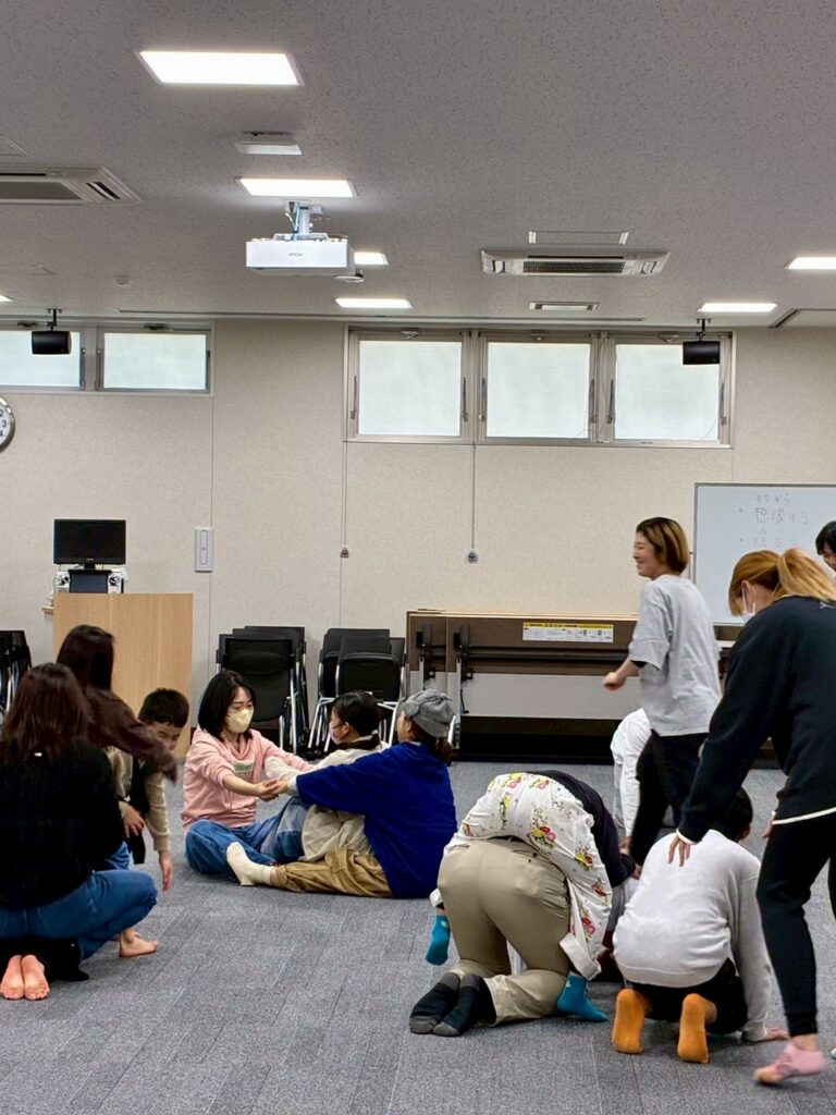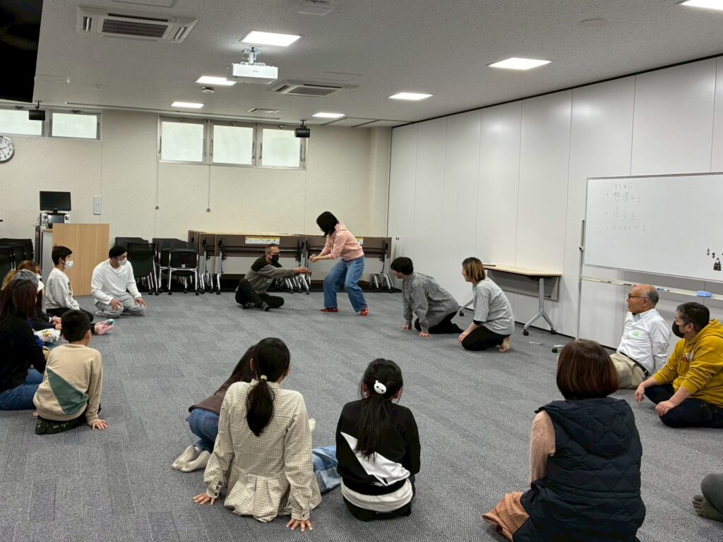 今回は、俳優の方がリードしながら体を動かして表現をするという内容で、正直よっしぃは「最近の子ども達、そういうの乗ってくれるかなぁ?」と心配していたのですが、今回担当して下さった俳優「阪本麻紀さん」の導入からの参加者を盛り上げる手法が秀逸でした。