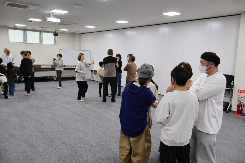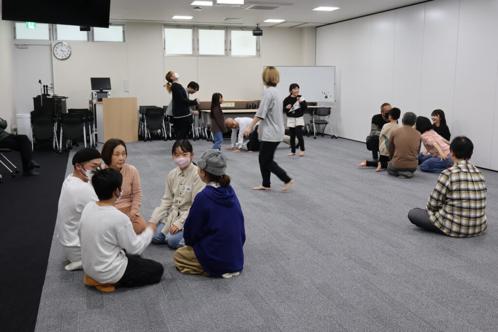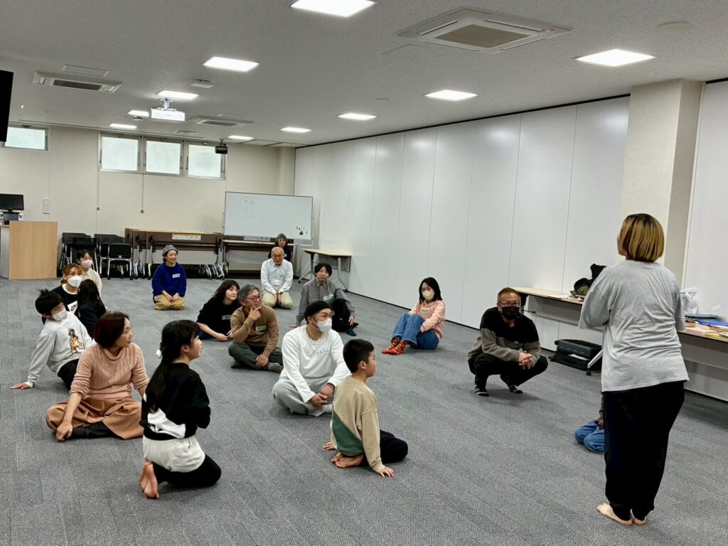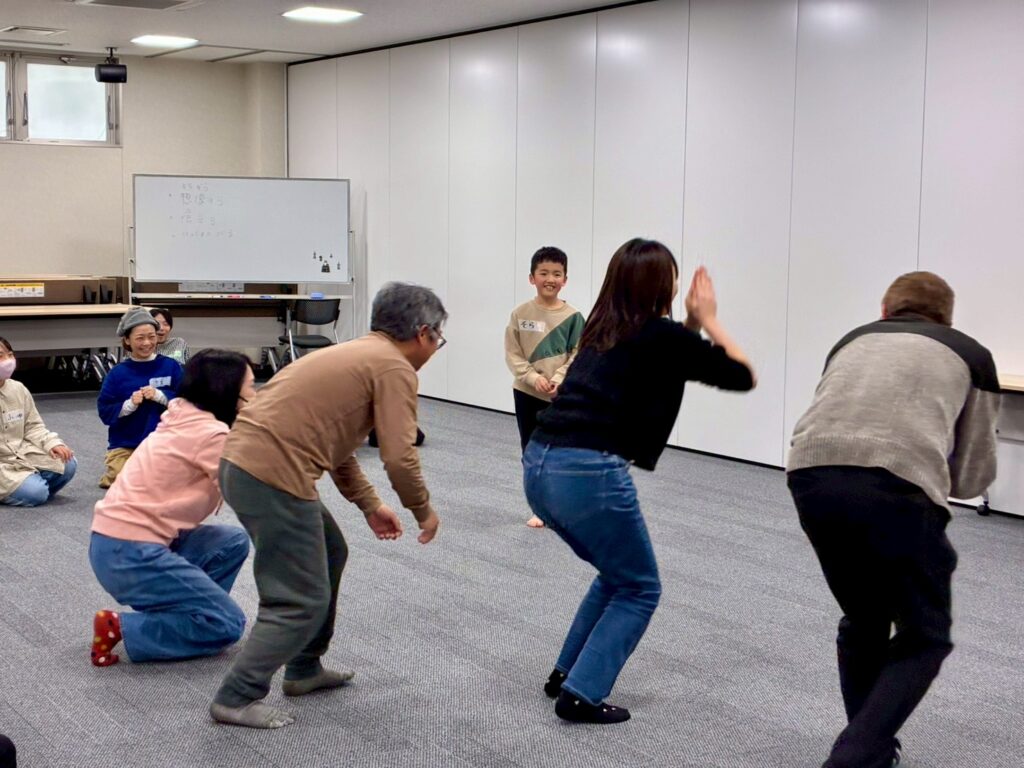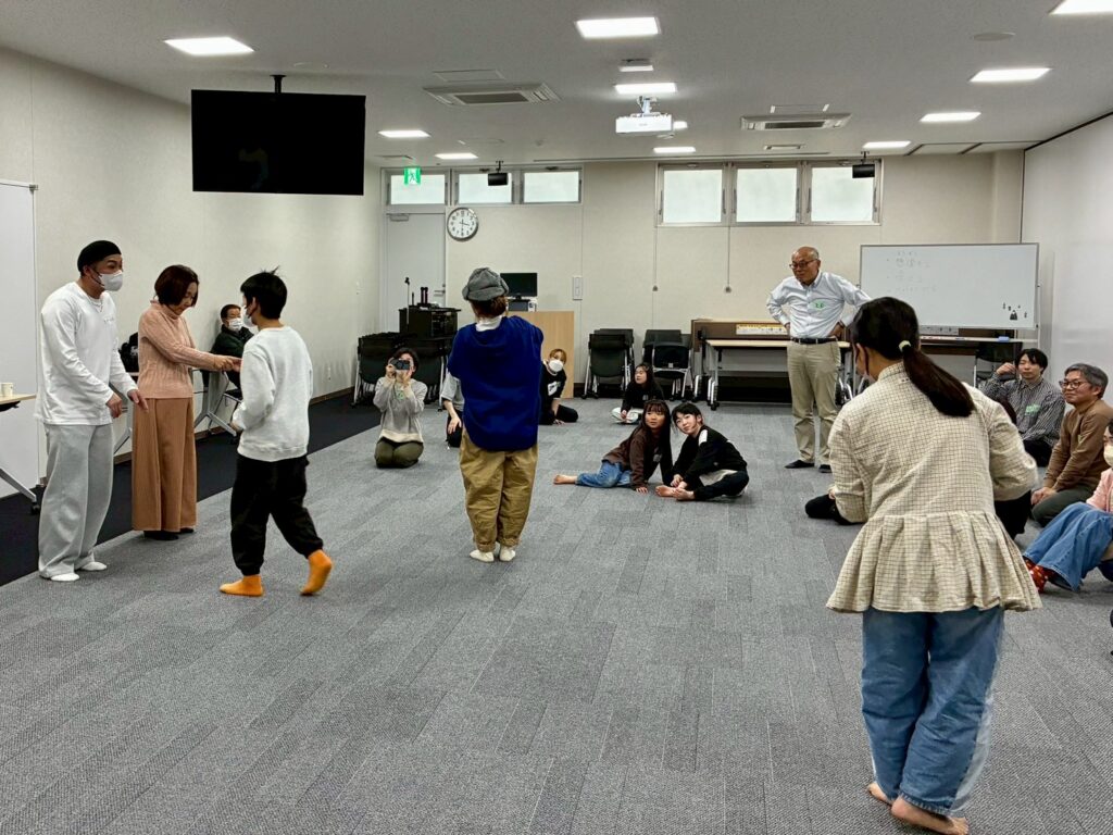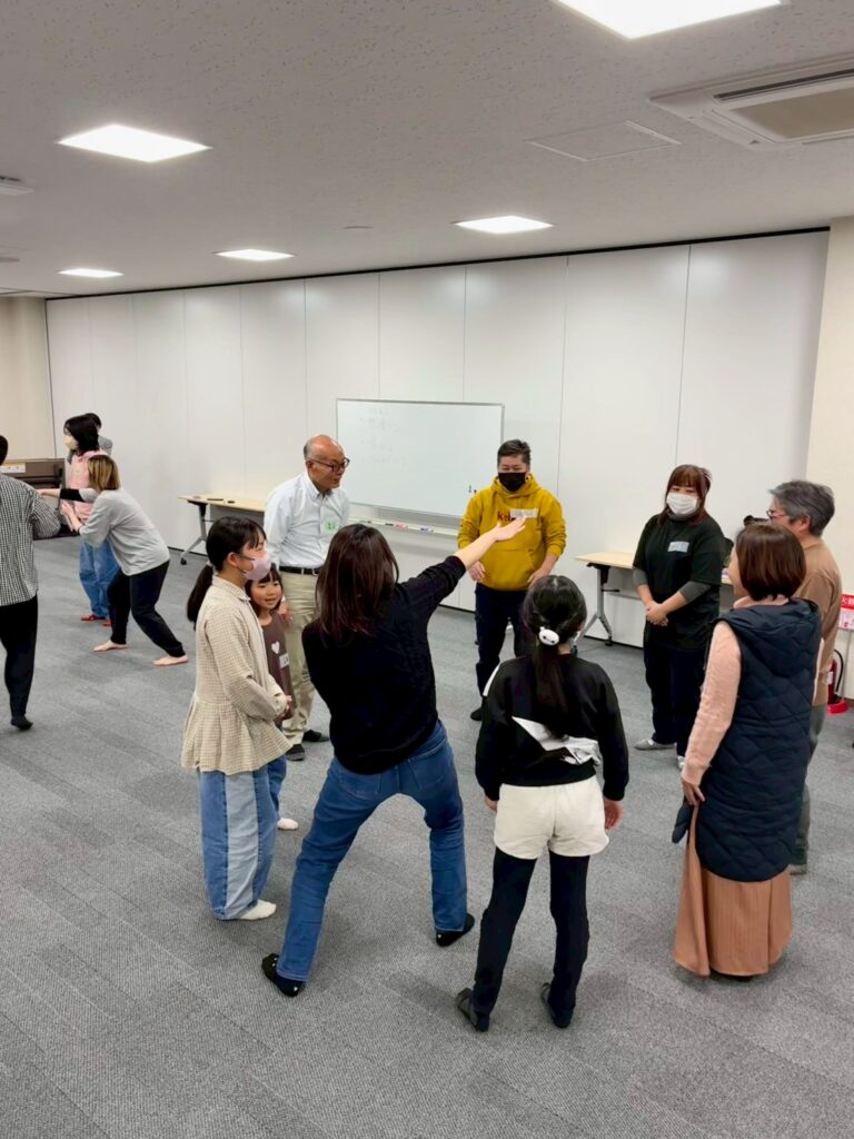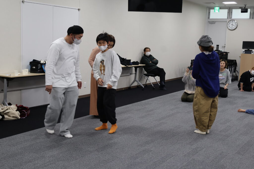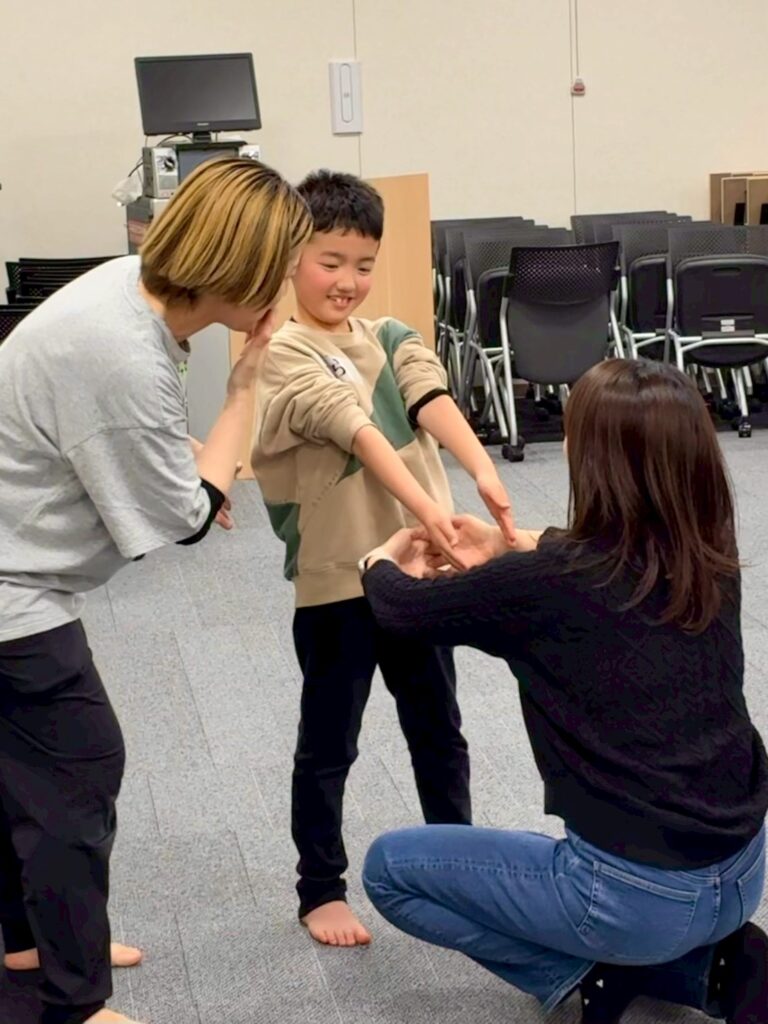 今回は、俳優の方がリードしながら体を動かして表現をするという内容で、正直よっしぃは「最近の子ども達、そういうの乗ってくれるかなぁ?」と心配していたのですが、今回担当して下さった俳優「阪本麻紀さん」の導入からの参加者を盛り上げる手法が秀逸でした。