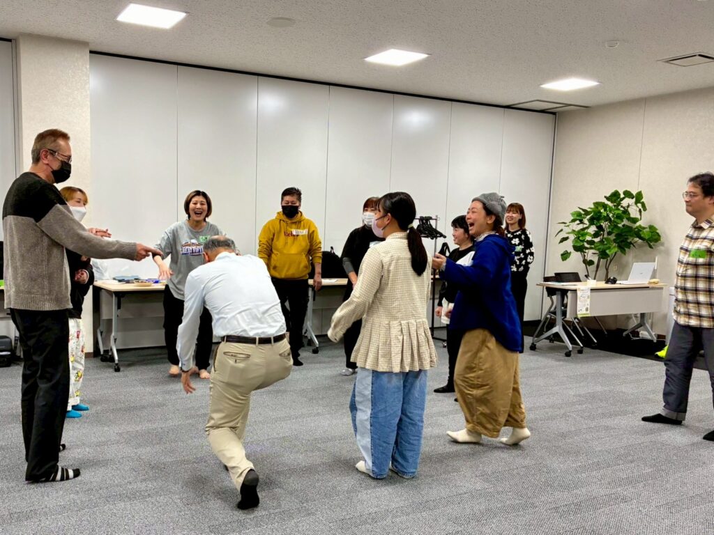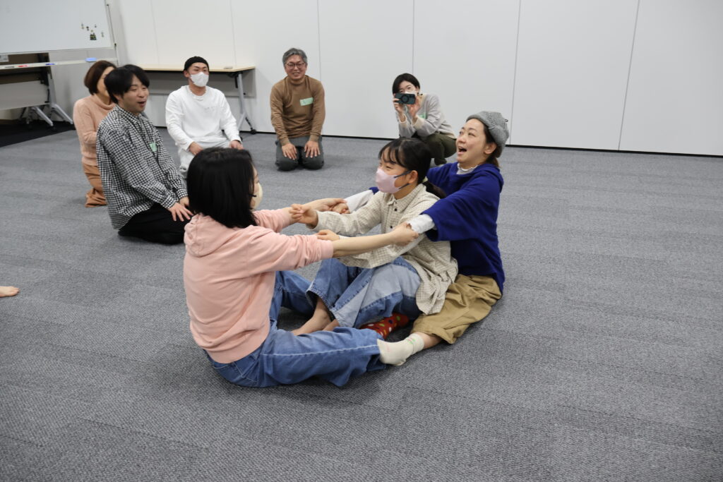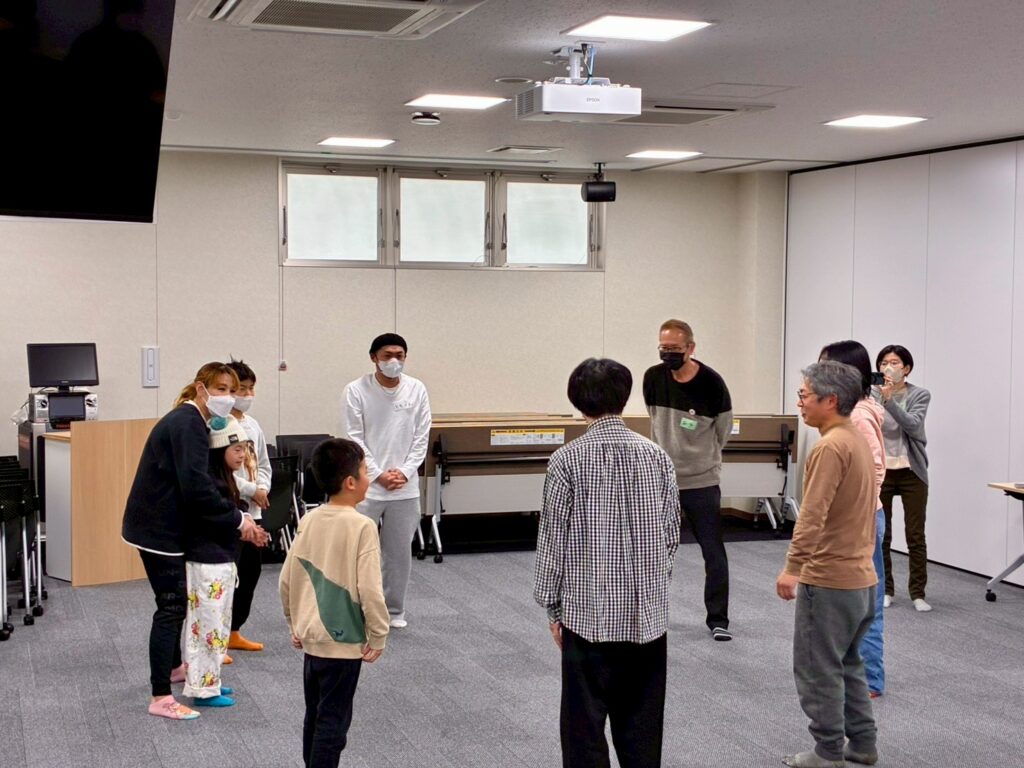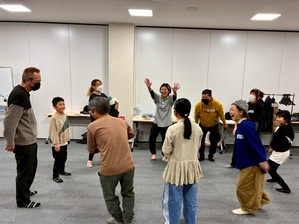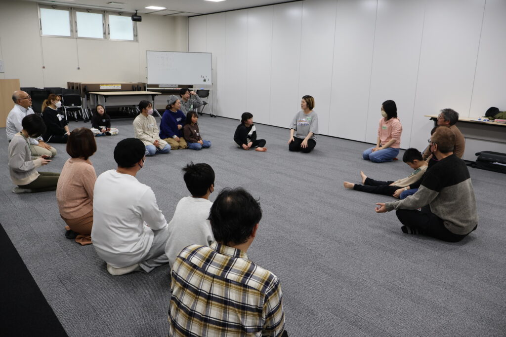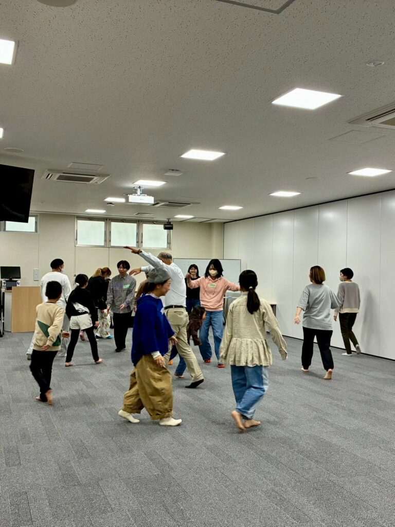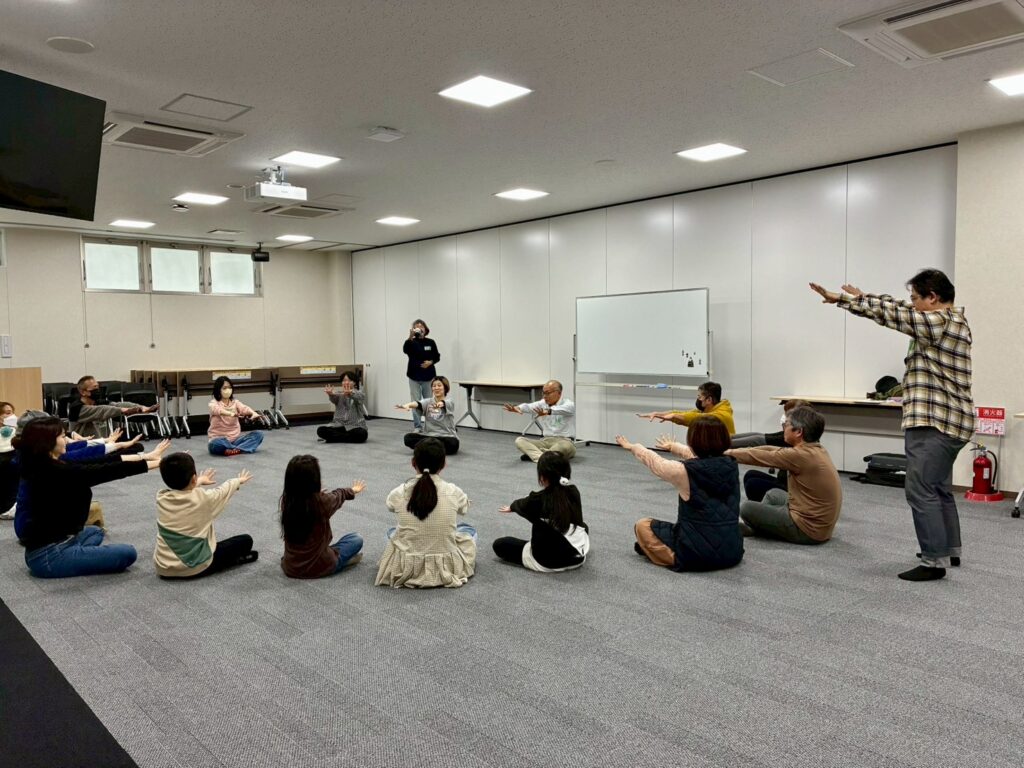 今回は、俳優の方がリードしながら体を動かして表現をするという内容で、正直よっしぃは「最近の子ども達、そういうの乗ってくれるかなぁ?」と心配していたのですが、今回担当して下さった俳優「阪本麻紀さん」の導入からの参加者を盛り上げる手法が秀逸でした。