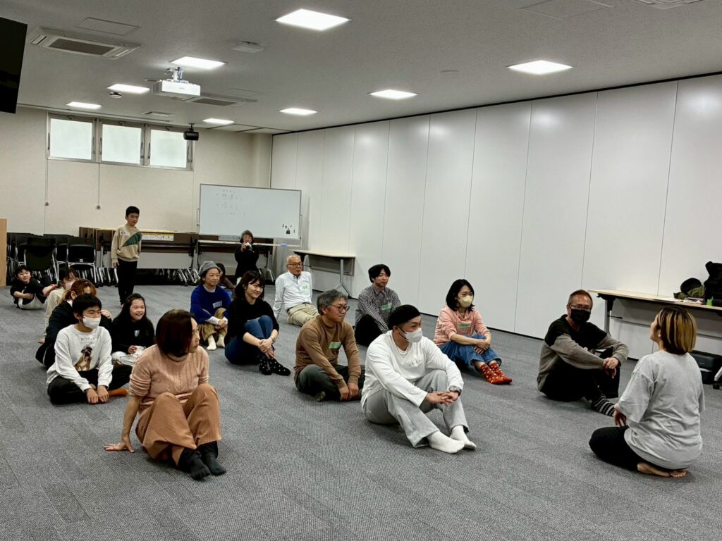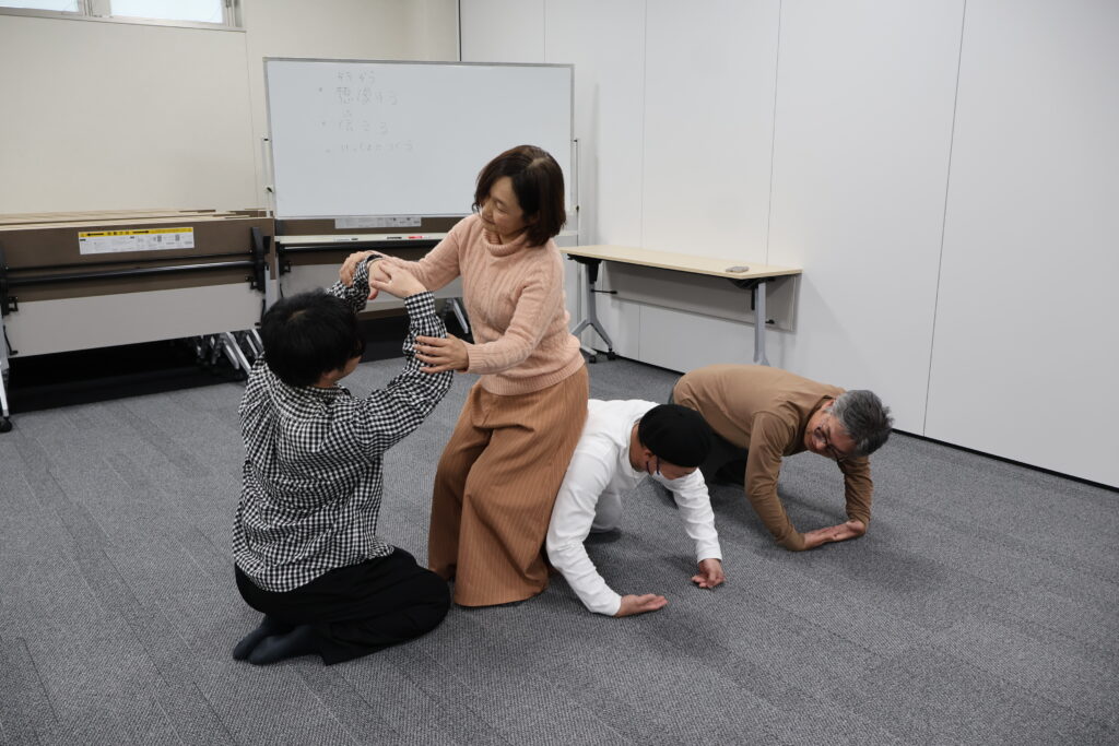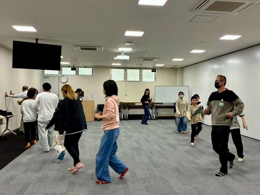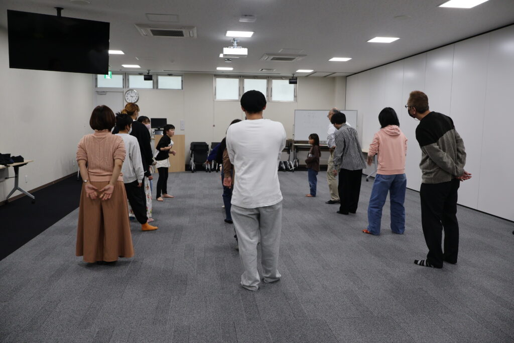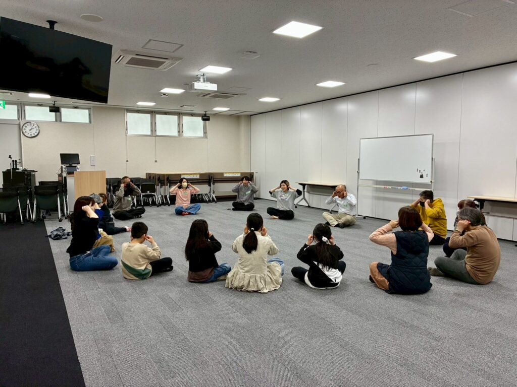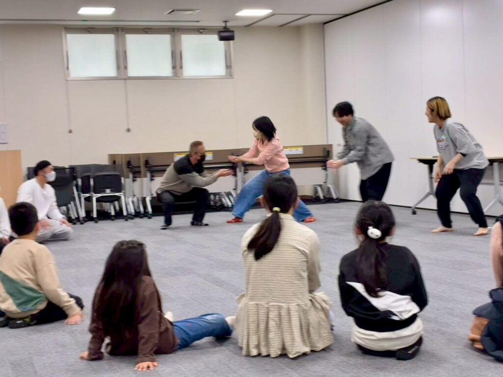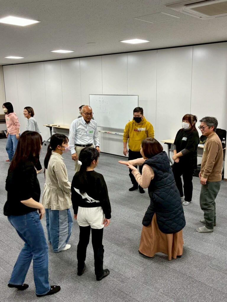 今回は、俳優の方がリードしながら体を動かして表現をするという内容で、正直よっしぃは「最近の子ども達、そういうの乗ってくれるかなぁ?」と心配していたのですが、今回担当して下さった俳優「阪本麻紀さん」の導入からの参加者を盛り上げる手法が秀逸でした。