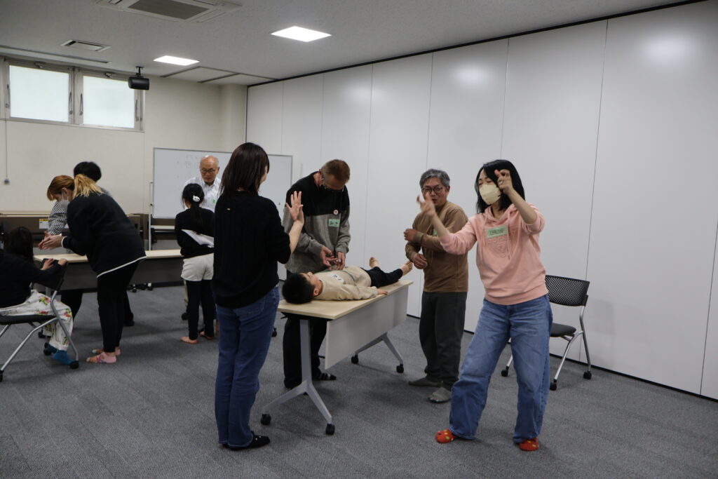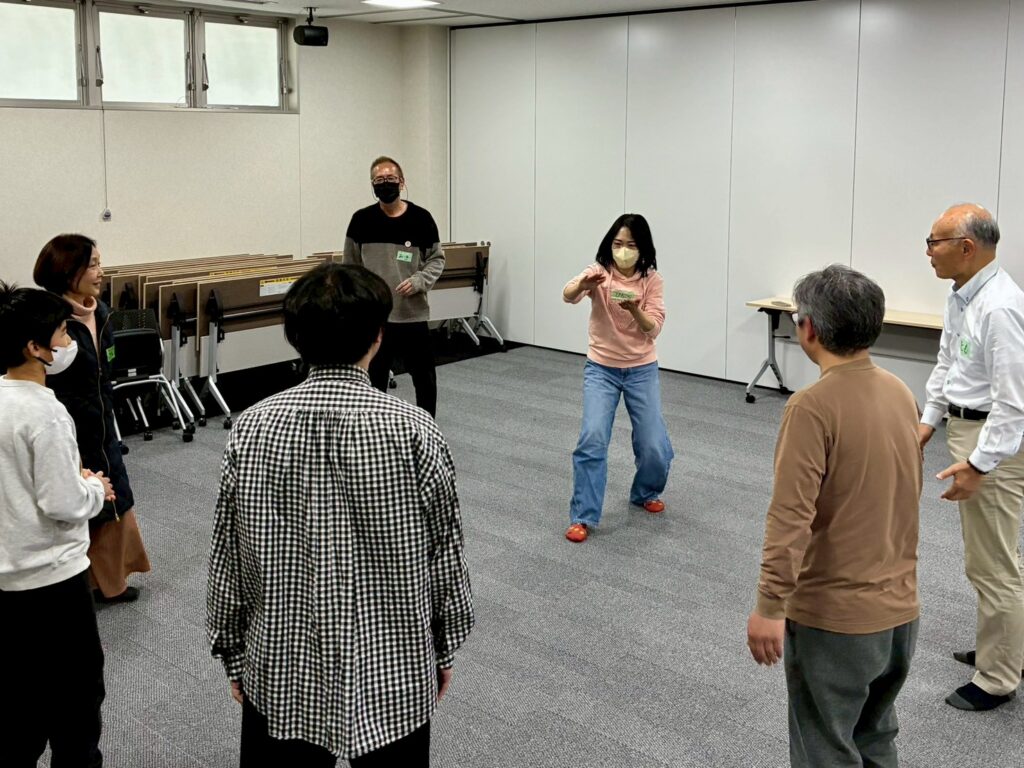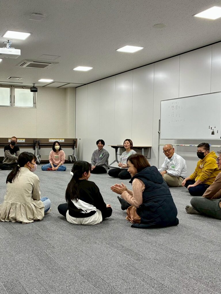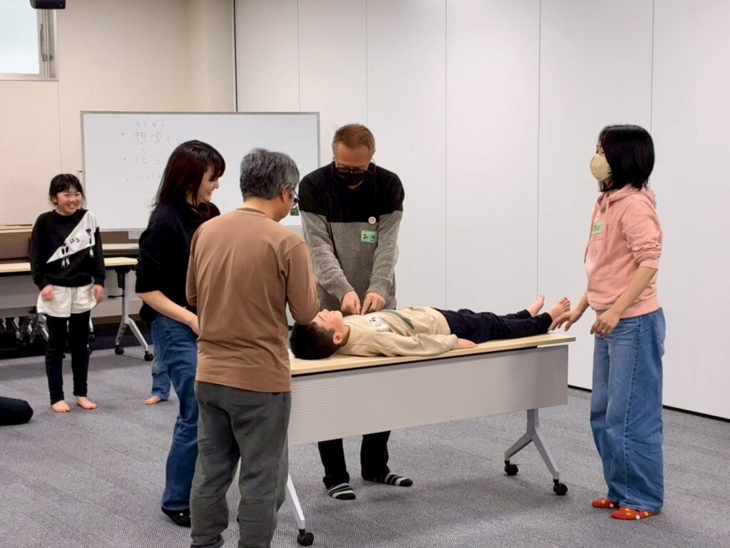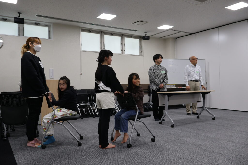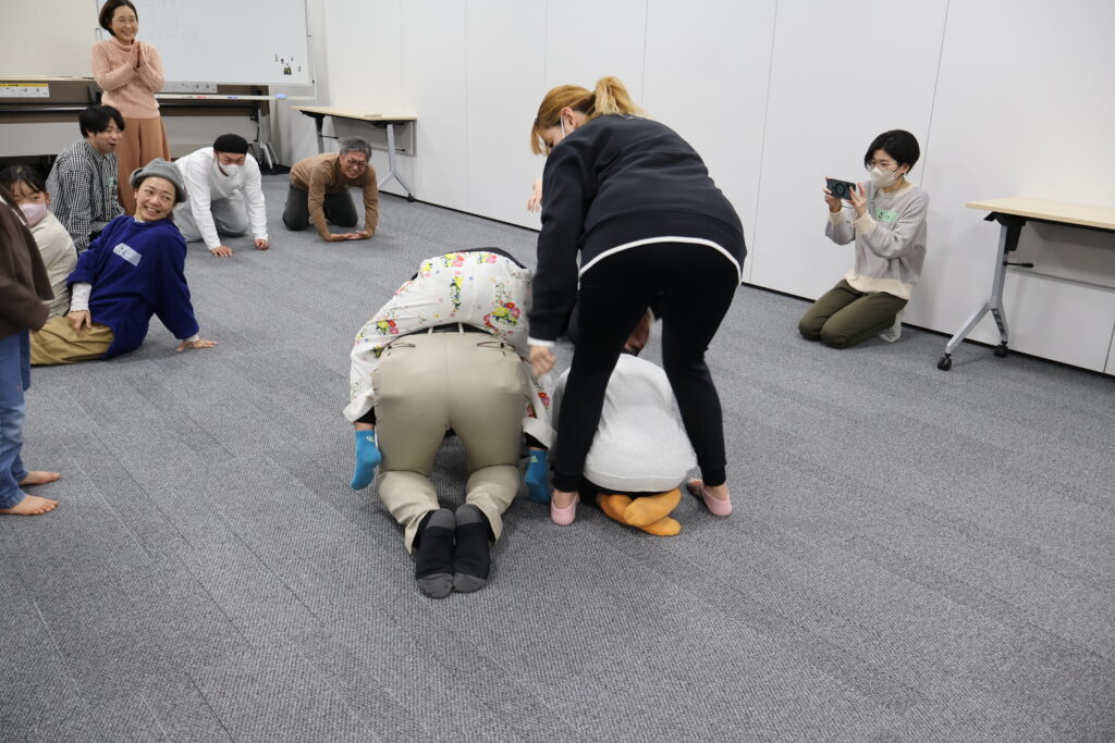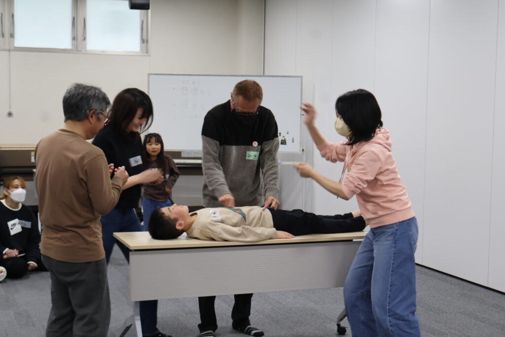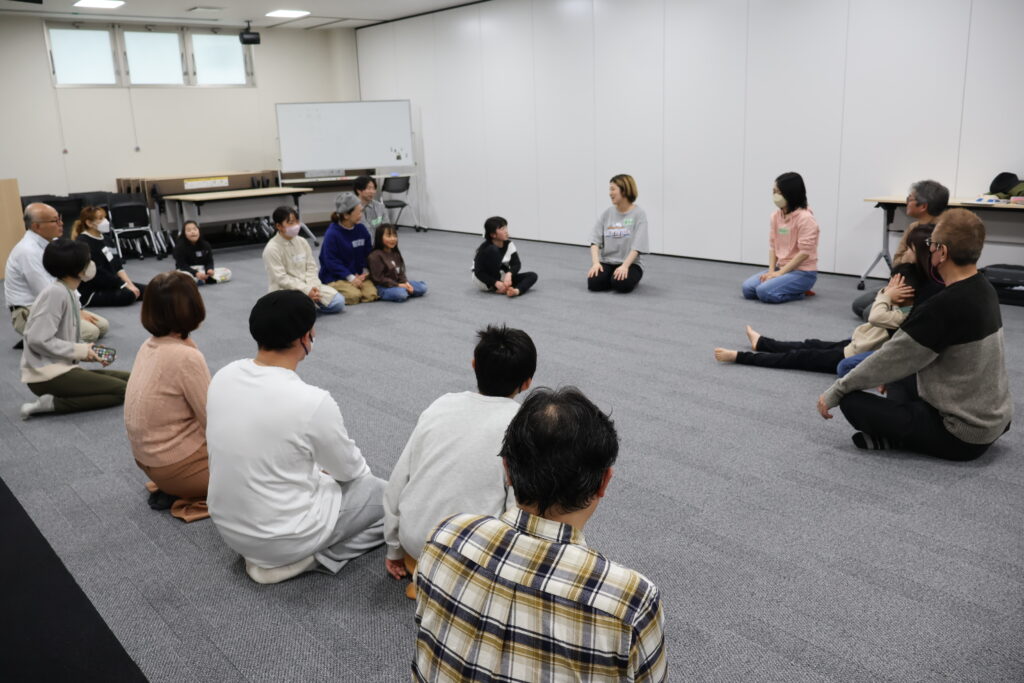 今回は、俳優の方がリードしながら体を動かして表現をするという内容で、正直よっしぃは「最近の子ども達、そういうの乗ってくれるかなぁ?」と心配していたのですが、今回担当して下さった俳優「阪本麻紀さん」の導入からの参加者を盛り上げる手法が秀逸でした。