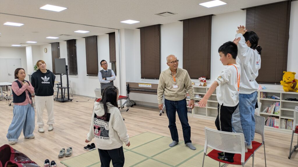 横江理事長は、『表現あそびワークショップ』で子ども達と一緒にやったので、子ども達も仲間と思ってくれていて、違和感なく入れています。なんか羨ましいです。