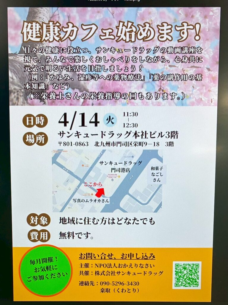 2026年4月14日(火)に、株式会社サンキュードラッグさんとの共催で、地域住民交流企画「健康カフェ」事業をスタートさせました。